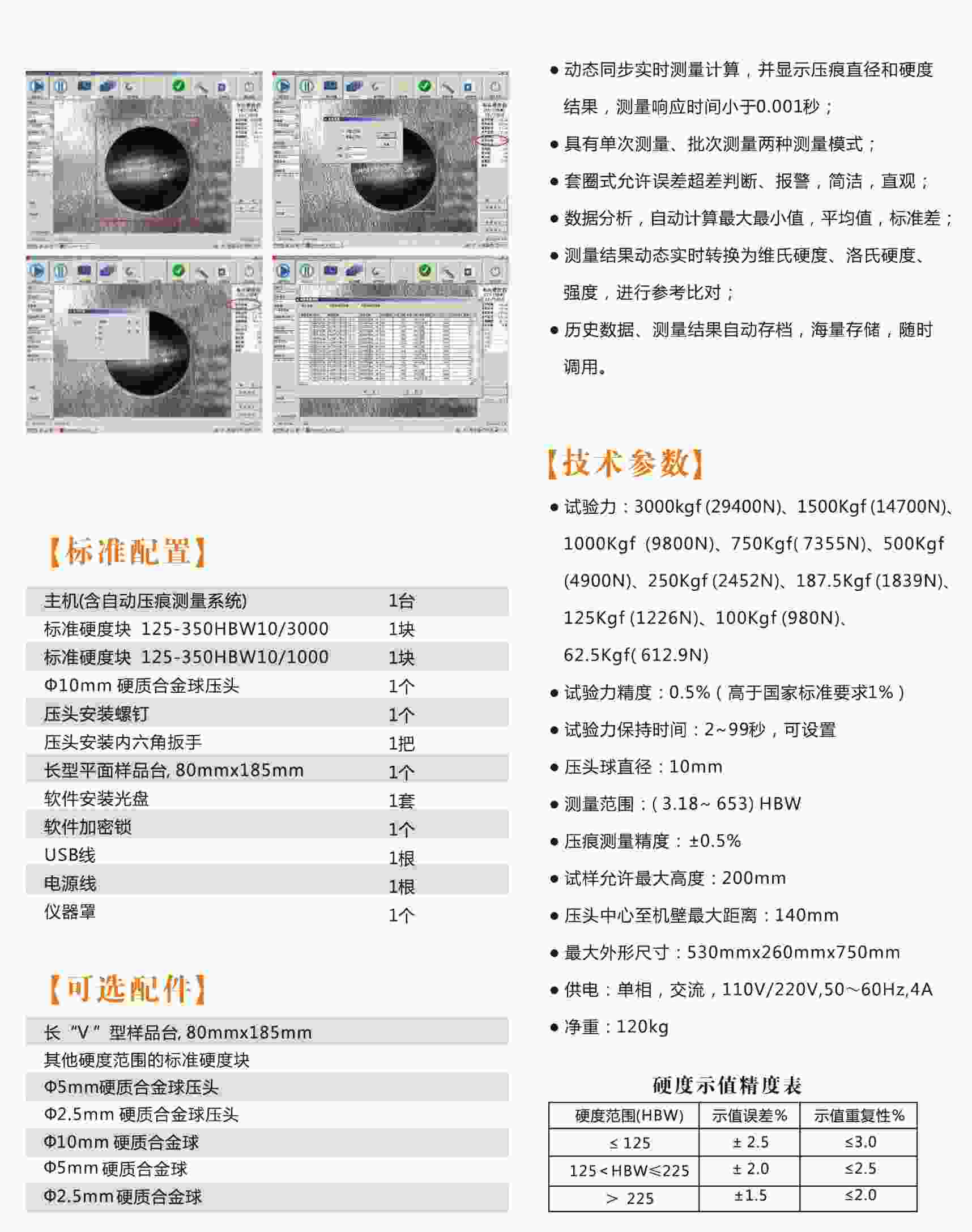 ● 隨機提供布氏硬度測量材料、硬度、參數(shù)選擇常識查詢軟件,根據(jù)材料種類、硬度范圍選擇0.102F/D2比參數(shù),使操作者準(zhǔn)確地執(zhí)行布氏機測量標(biāo)準(zhǔn)。