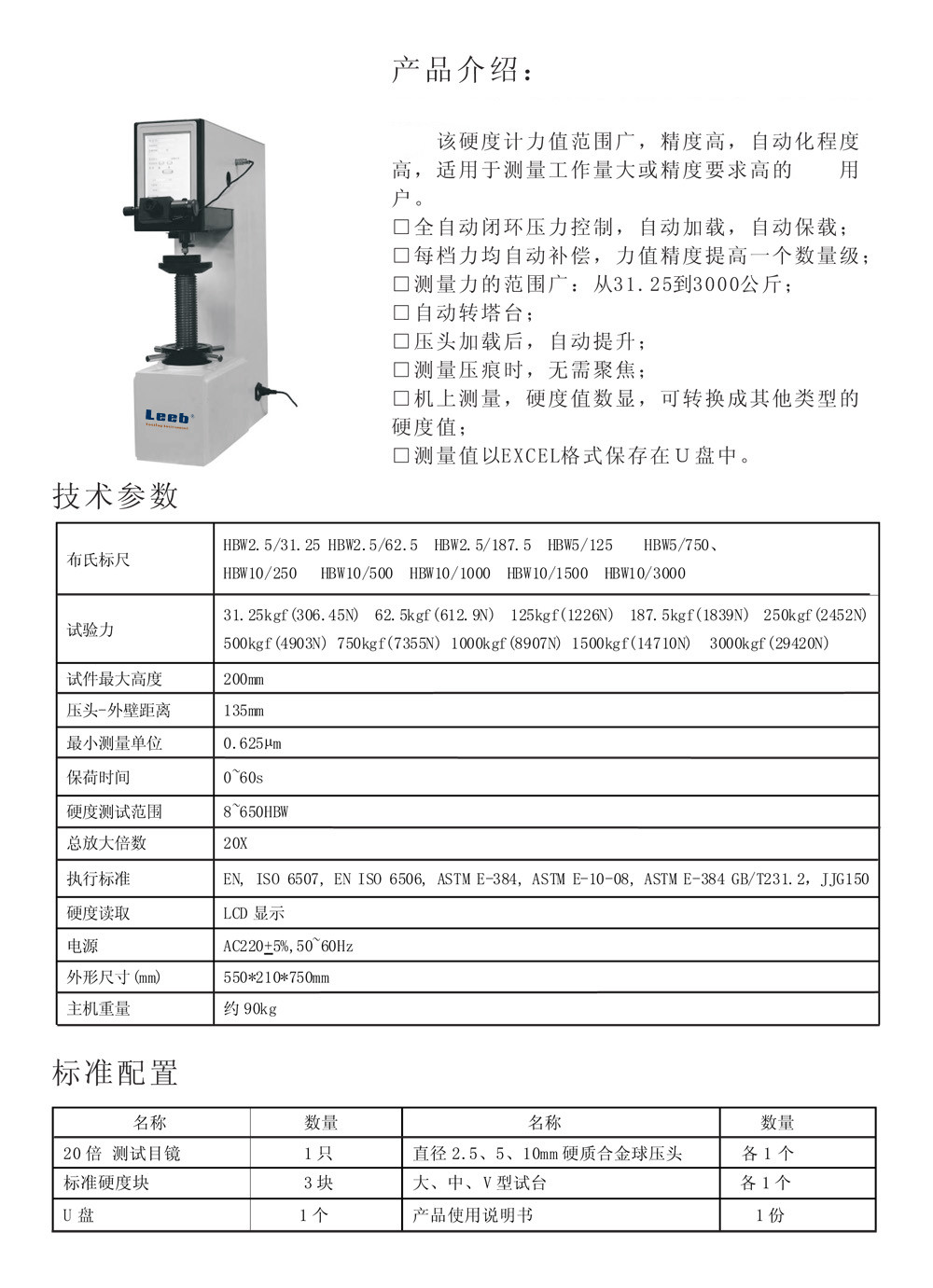 該硬度計(jì)力值范圍,自動化程度高,適用于測量大或精度要求高的用戶。