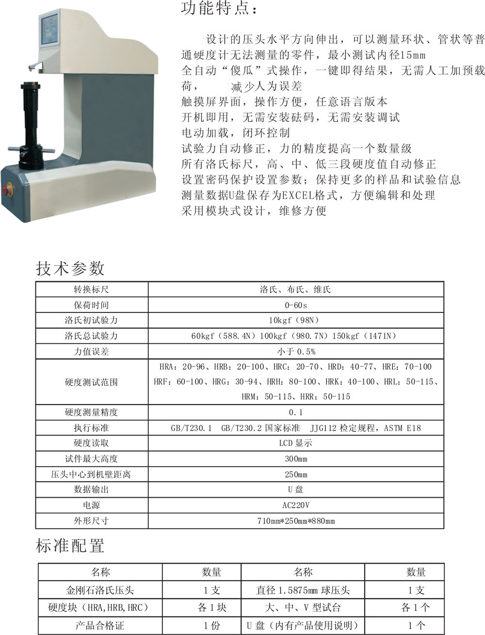 ● 壓頭水平方向伸出,可以測(cè)量環(huán)狀、管狀等普通硬度計(jì)無法測(cè)量的零件,最小測(cè)試內(nèi)徑15mm;