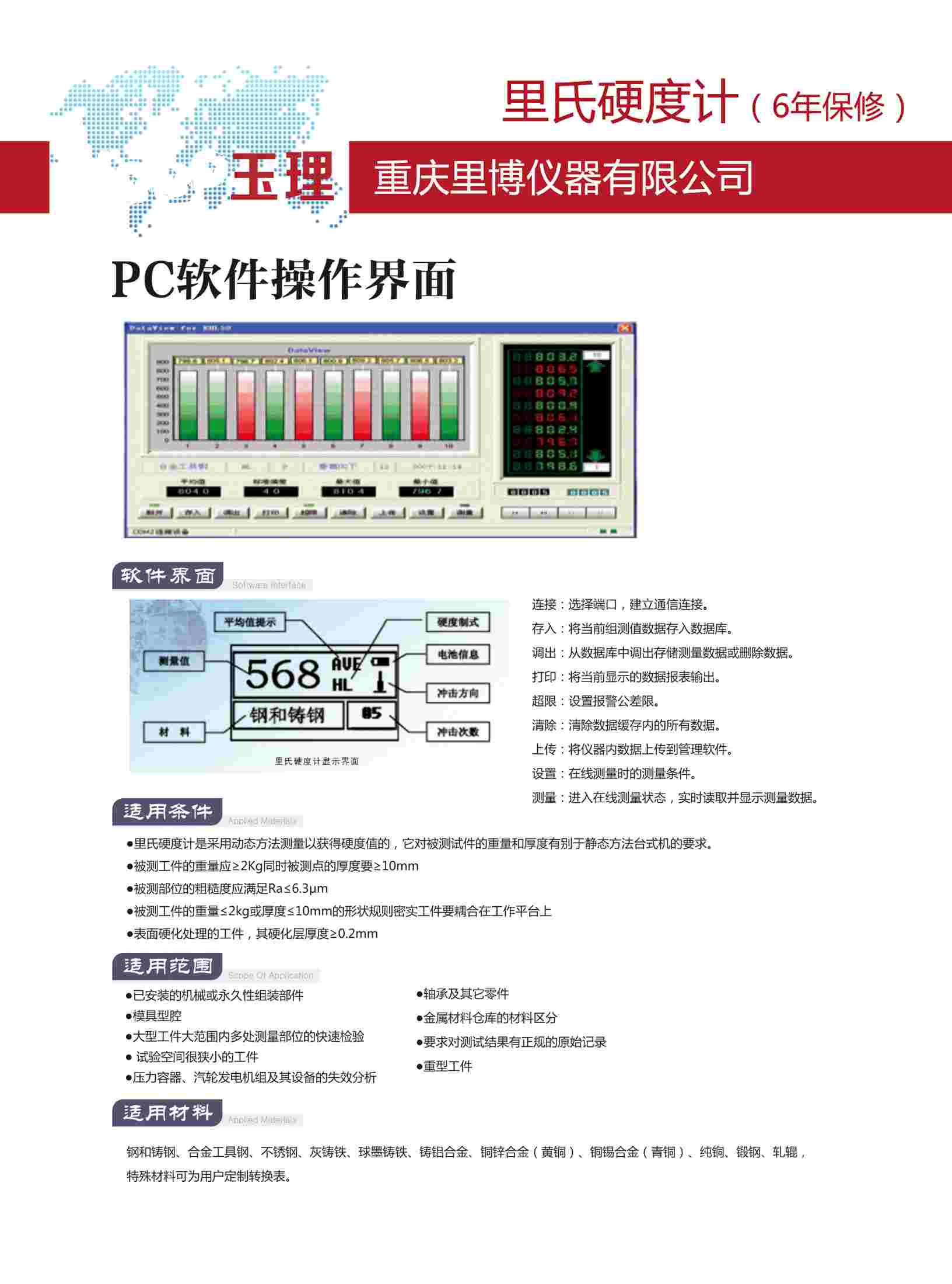 真彩屏里氏硬度計(jì)是公司基于對(duì)里氏硬度測(cè)量原理深入研究的基礎(chǔ)上,對(duì)其進(jìn)行了新設(shè)計(jì)。在現(xiàn)有數(shù)據(jù)表基礎(chǔ)上,新增了四種材料硬度制:D型沖擊裝置合金工具鋼增加了HRA、HB;鑄鋁合金HV項(xiàng);C型沖擊裝置增加了鑄鋁合金HV項(xiàng);而且,更值得一提的是,開(kāi)發(fā)了《用戶材料》功能,實(shí)現(xiàn)了用戶可以對(duì)特殊材料測(cè)試的需求!拓展了里氏硬度計(jì)使用范圍。