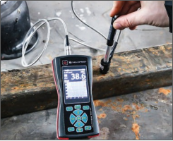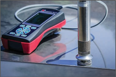 該儀器采用超聲接觸阻抗法(UCI),符合ASTM A1038標準,是一種非直接測量壓痕的動態(tài)壓入法。端部鑲有特定壓頭(如金剛石壓頭)的振動桿受到激勵做縱向超聲振動,用一定的試驗力將壓頭壓入試驗表面,振動桿的縱向振動將受到阻抗,諧振頻率發(fā)生變化,從而得出硬度值。這種硬度測量方法已經在各國大范圍使用,并且已經在工業(yè)領域使用了50多年。