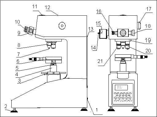 ● 用測微目鏡測得對角線長度D1和D2值,按鍵輸入后可在LCD上顯示硬度值;