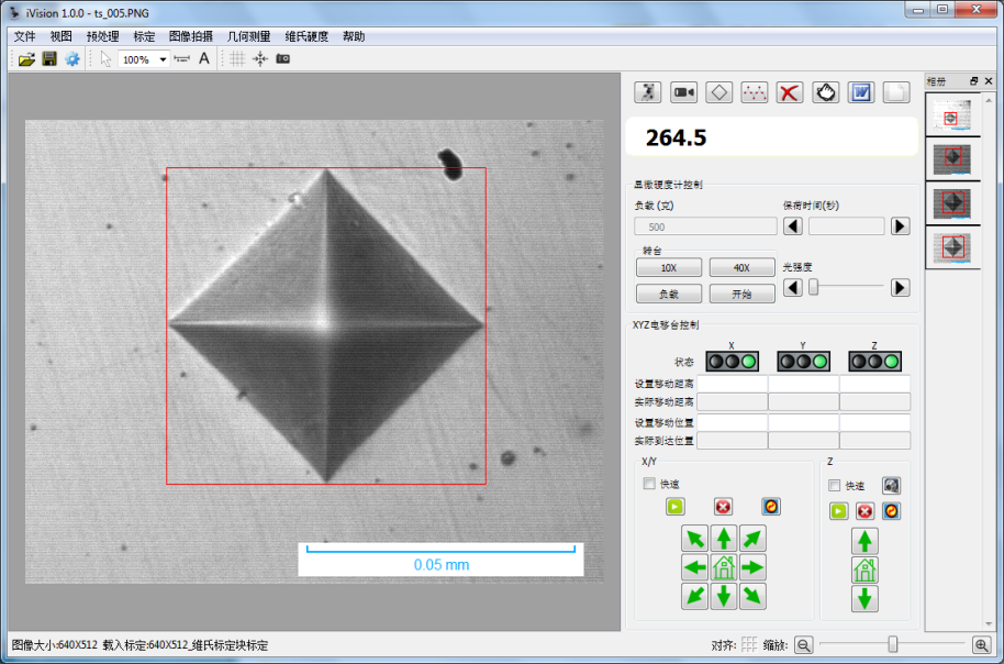 3.每點測量圖像被保存可用于最后手動修正;修正時只需要鼠標(biāo)拖拉壓痕四邊形邊框,硬度測量值、統(tǒng)計、和測量像冊等自動更新。 |