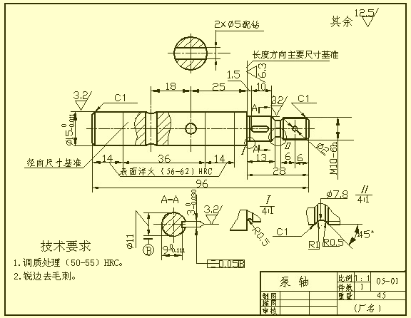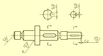如圖中所示的表面粗糙度為Ra6.3的右軸肩,被選為長度方向的主要尺寸基準
