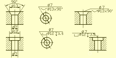 常見孔的尺寸注法(盲孔、螺紋孔、沉孔、锪平孔);倒角的尺寸注法。