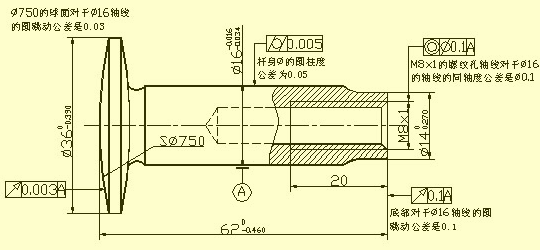 一根氣門閥桿,在圖中所標注的形位公差附近添加的文字,只是為了給讀者作說明而重復寫上的,在實際的圖樣中不需要重復注寫。