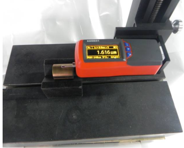 銅套、套類工件在使用過程中內壁以及外壁需要與相配的部件產(chǎn)生潤滑摩擦,所以對粗糙度也提出了要求。這類小套件由于體積較小、重量也比較輕、正常擺放測量工件會產(chǎn)生位移,無法測量。里博分體粗糙度儀、配上大理石測量平臺和V形塊,可以固定工件、檢測出實際粗糙度值。用于現(xiàn)場檢測,也可以用于實驗室檢測。