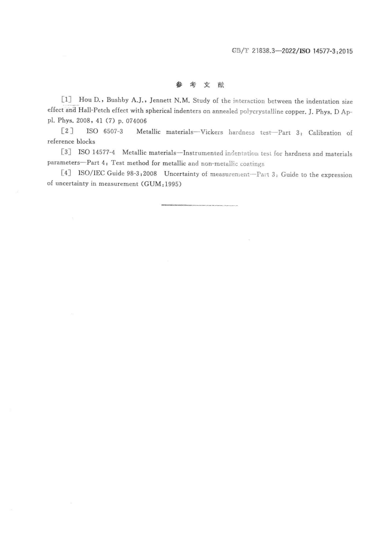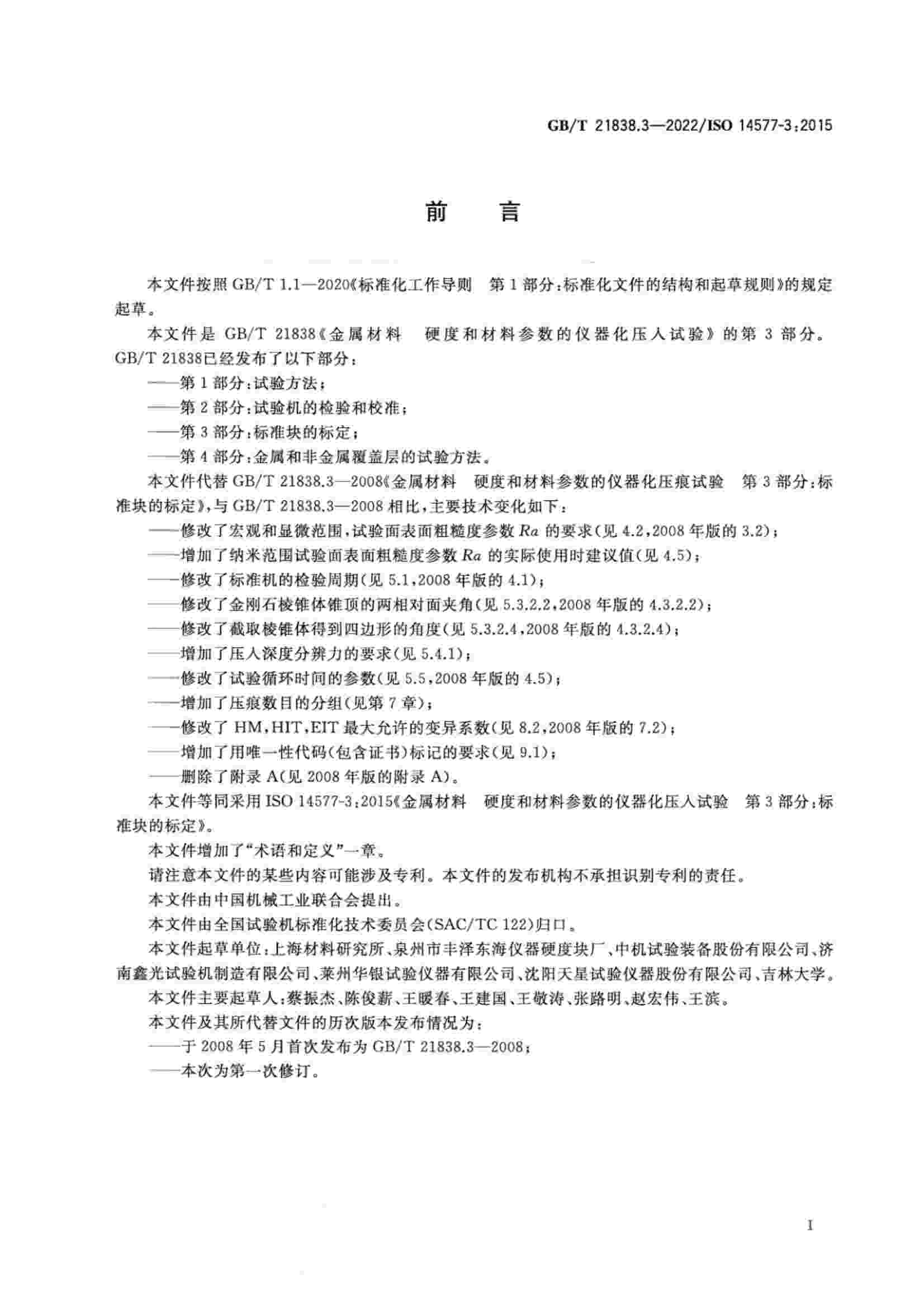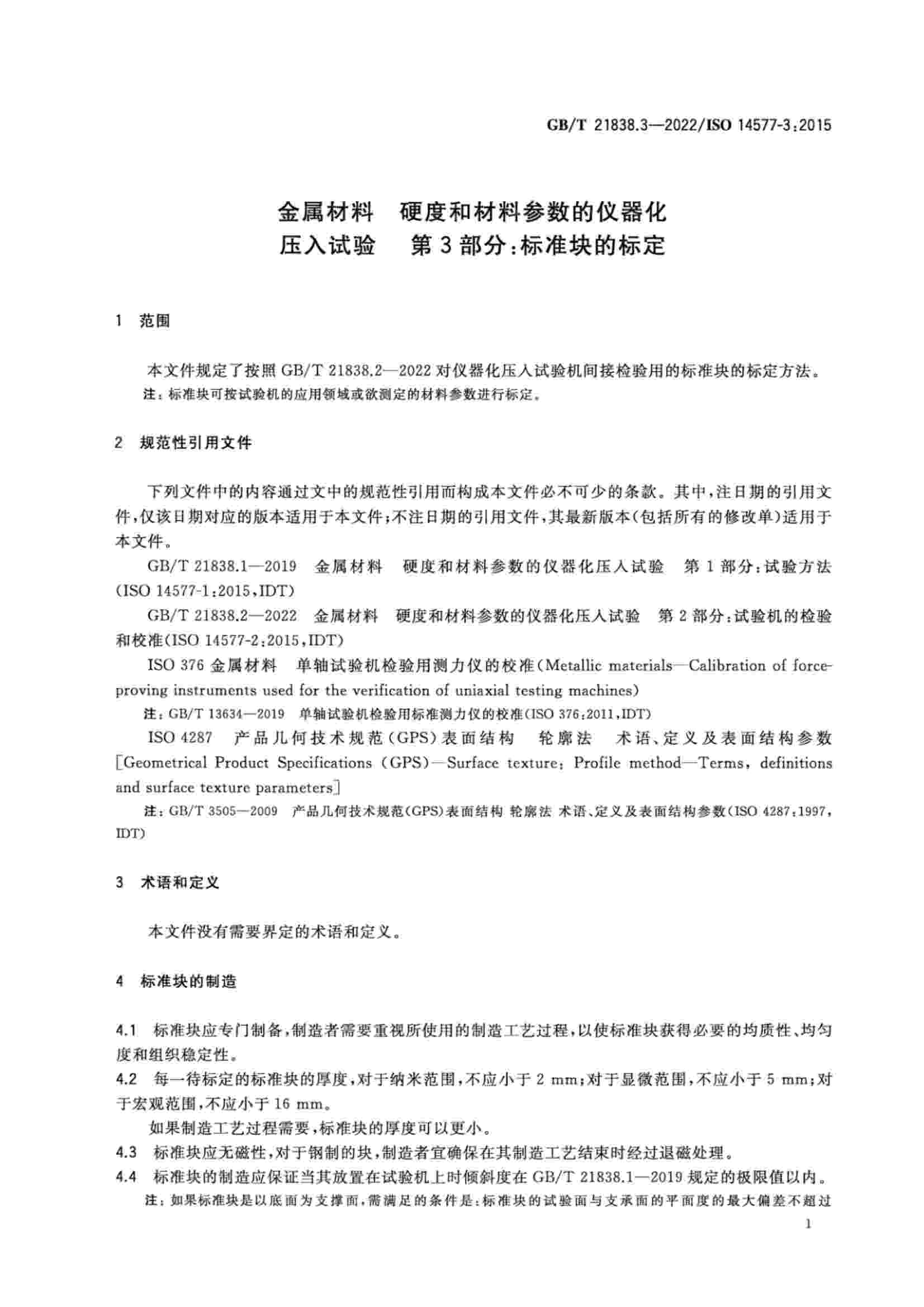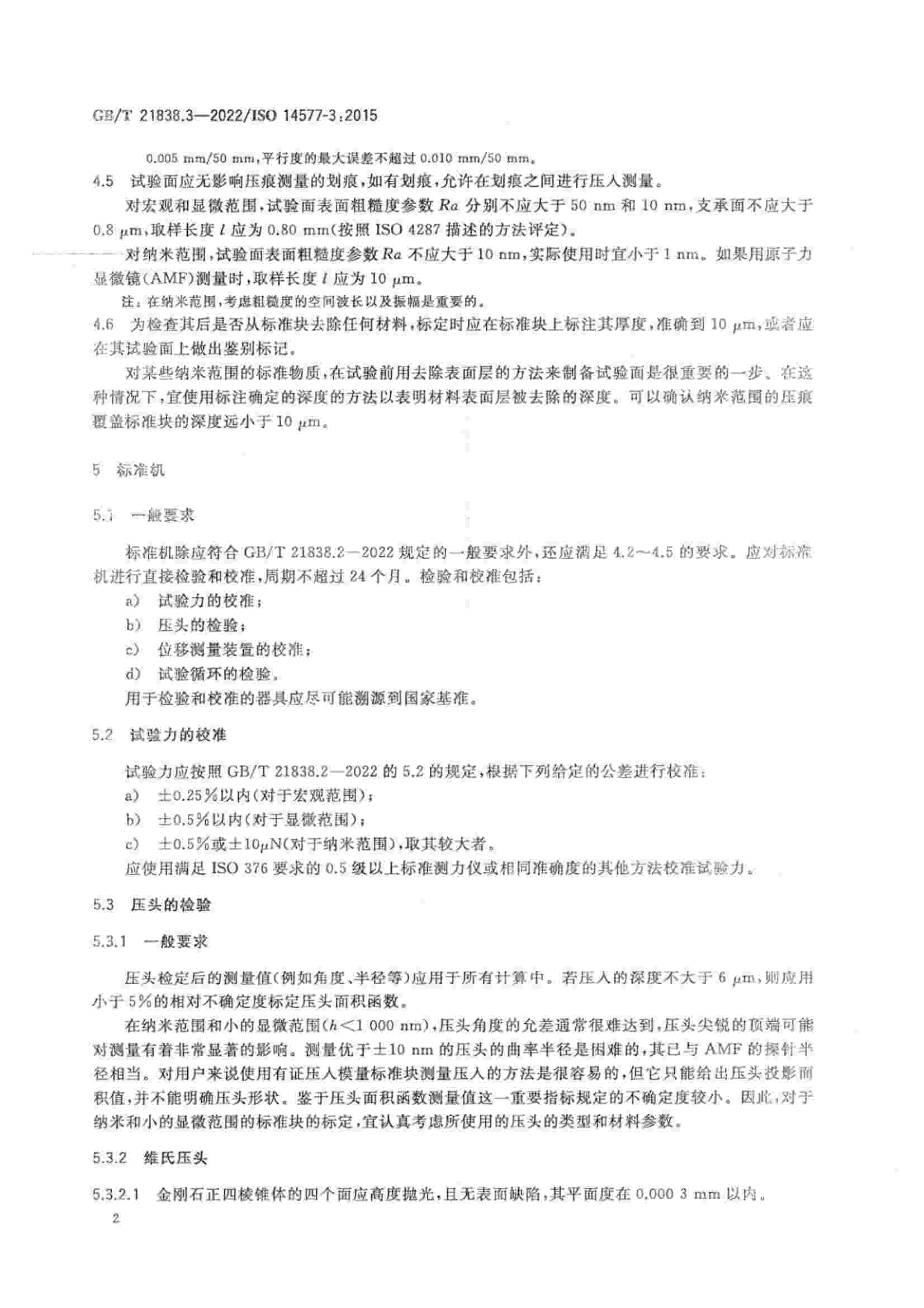 《GBT 21838.3-2022 金屬材料 硬度和材料參數(shù)的儀器化壓入試驗(yàn) 第3部分:標(biāo)準(zhǔn)塊的標(biāo)定》