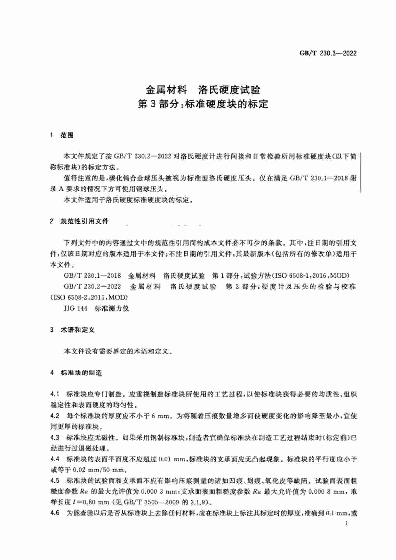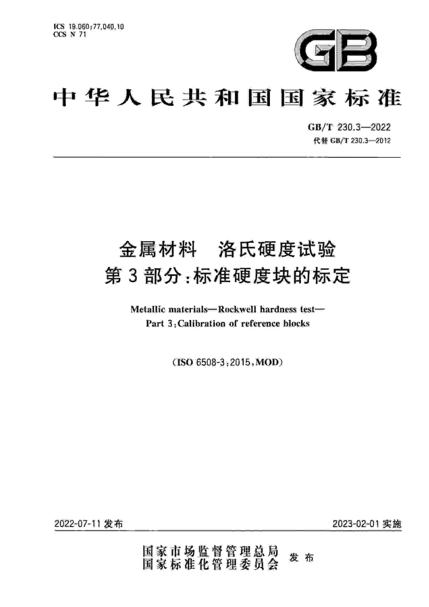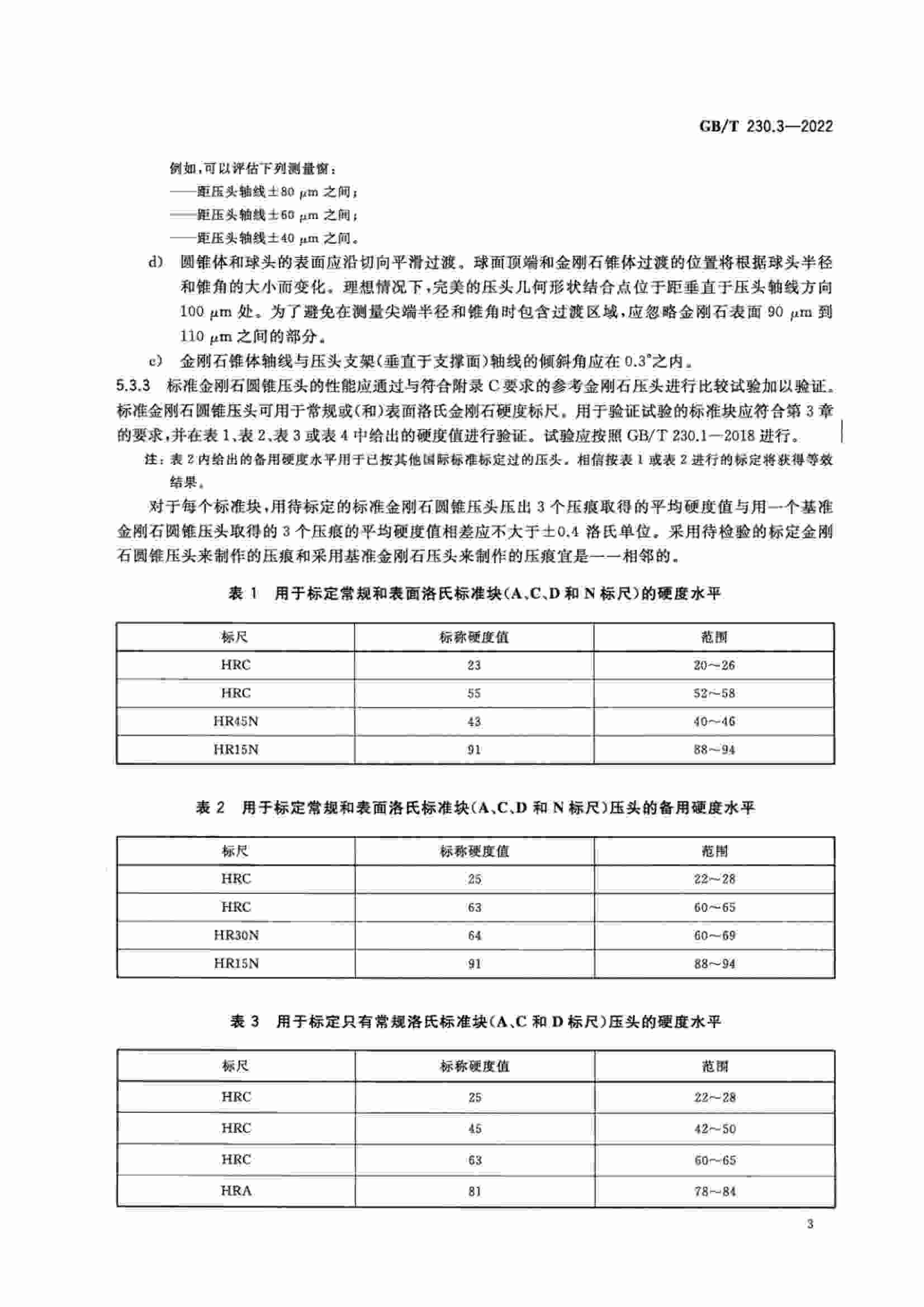 GBT 230.3-2022 金屬材料 洛氏硬度試驗(yàn) 第3部分:標(biāo)準(zhǔn)硬度塊的標(biāo)定