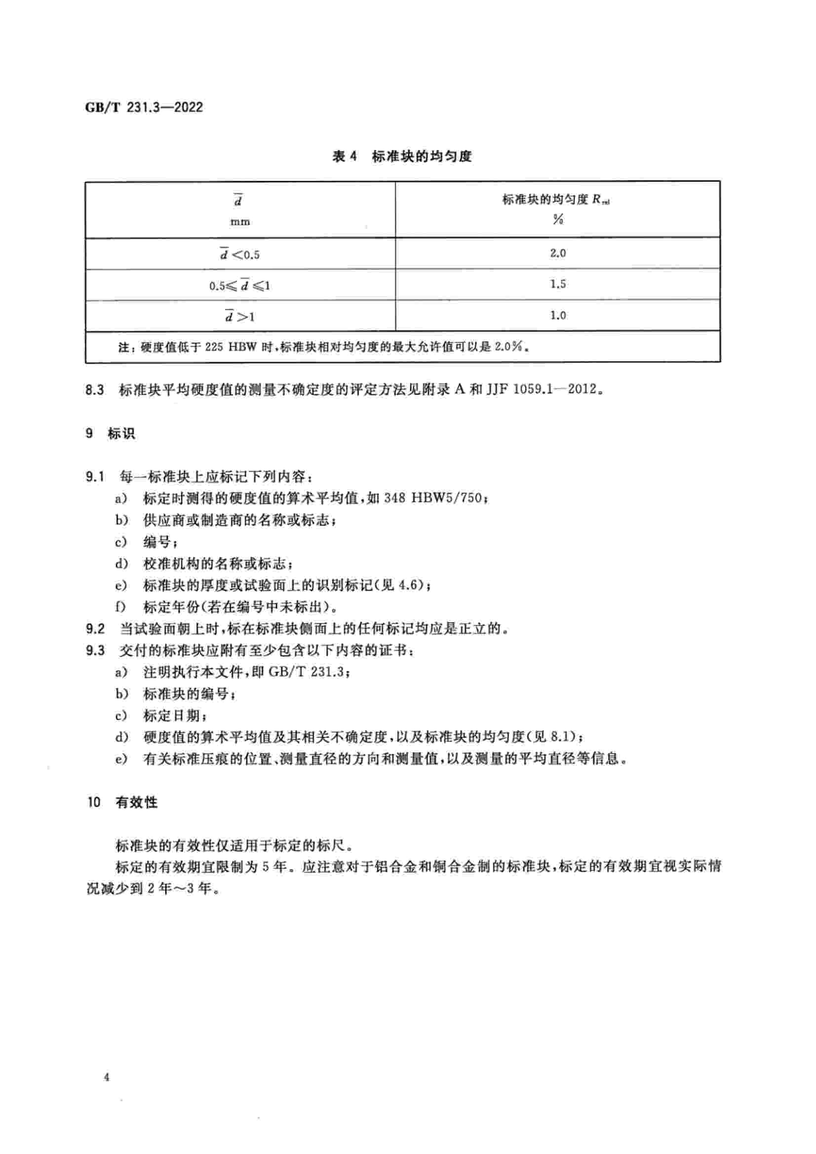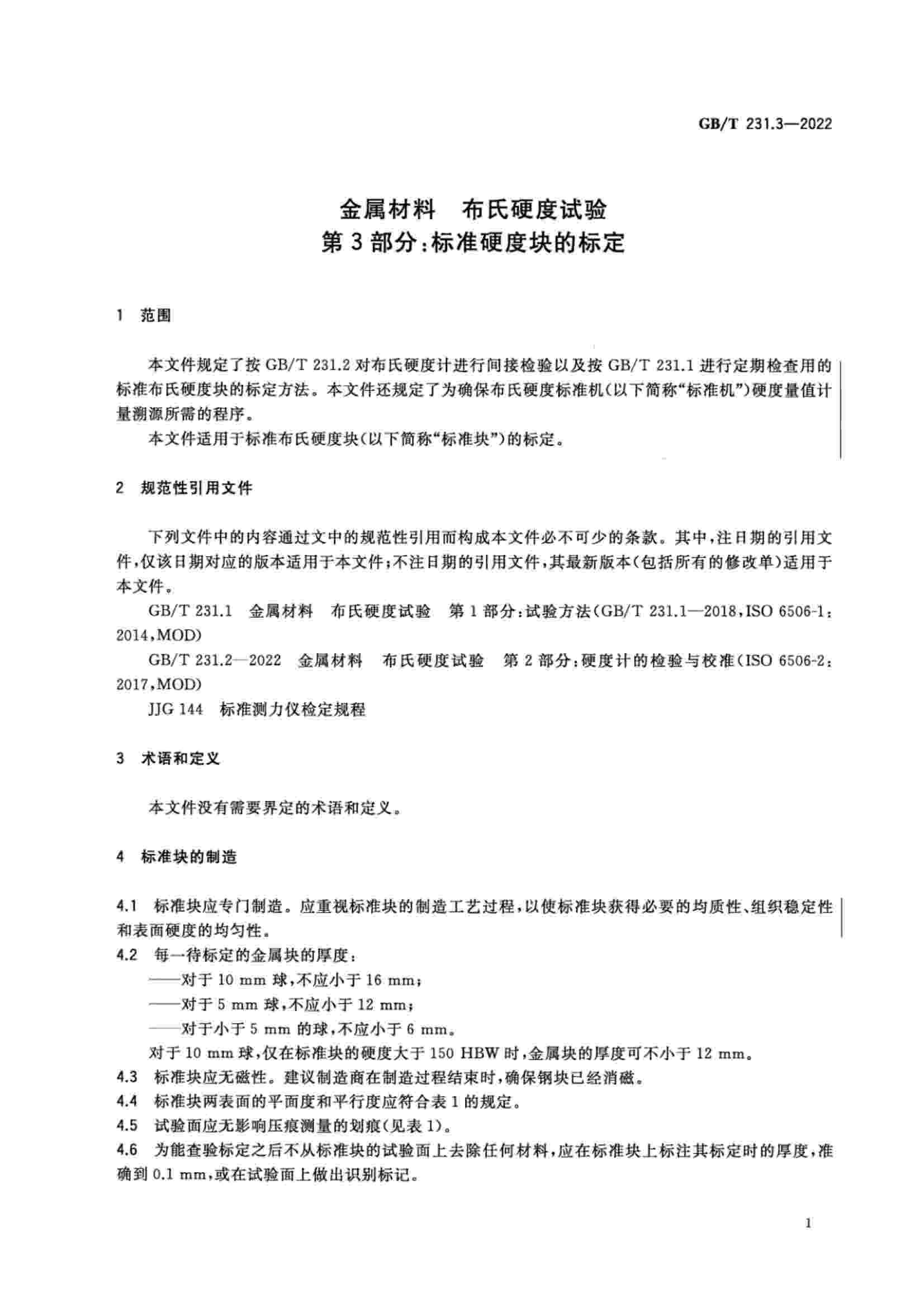 GBT 231.3-2022 金屬材料 布氏硬度試驗(yàn) 第3部分:標(biāo)準(zhǔn)硬度塊的標(biāo)定