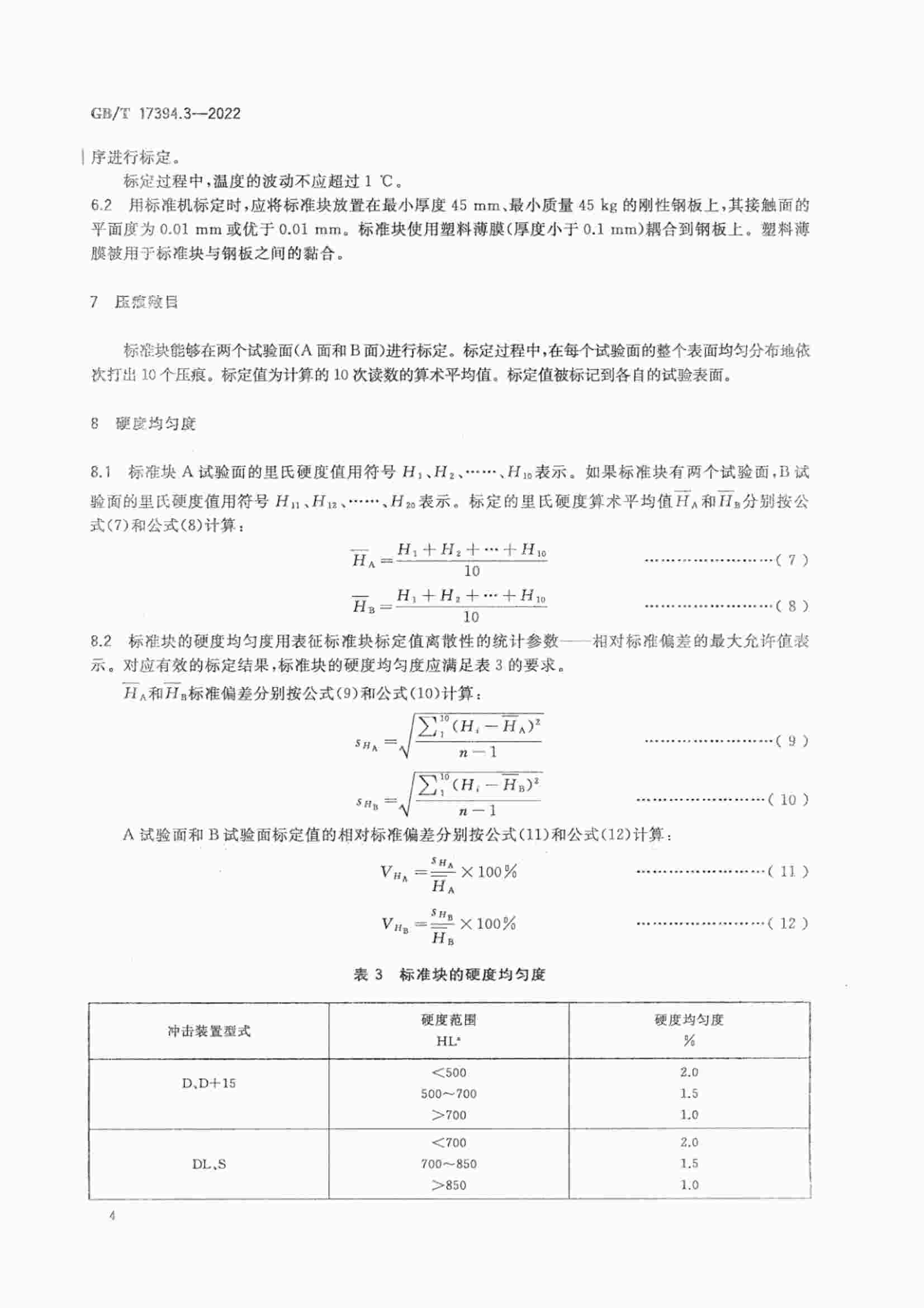 GBT 17394.3-2022 金屬材料 里氏硬度試驗(yàn) 第3部分:標(biāo)準(zhǔn)硬度塊的標(biāo)定》