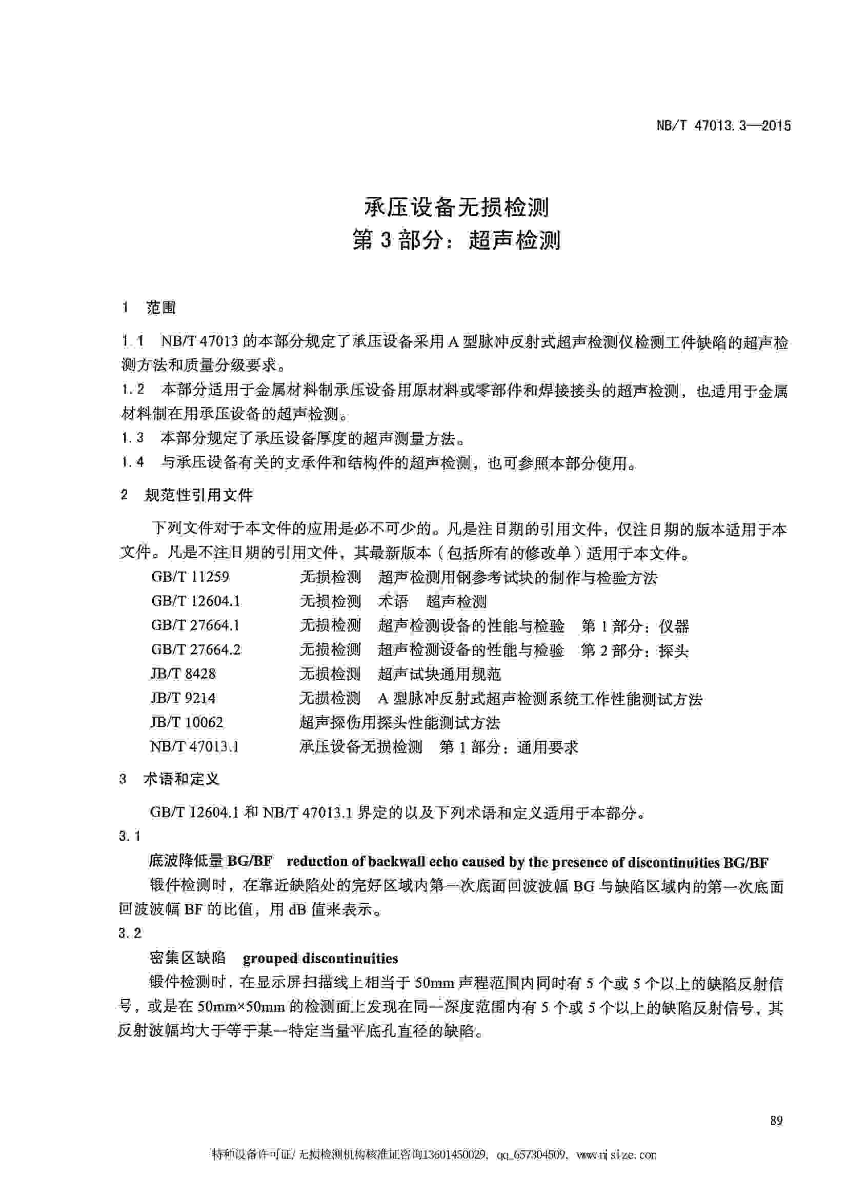NB/T47013-2015 承壓設(shè)備無損檢測 第3部分:超聲檢測