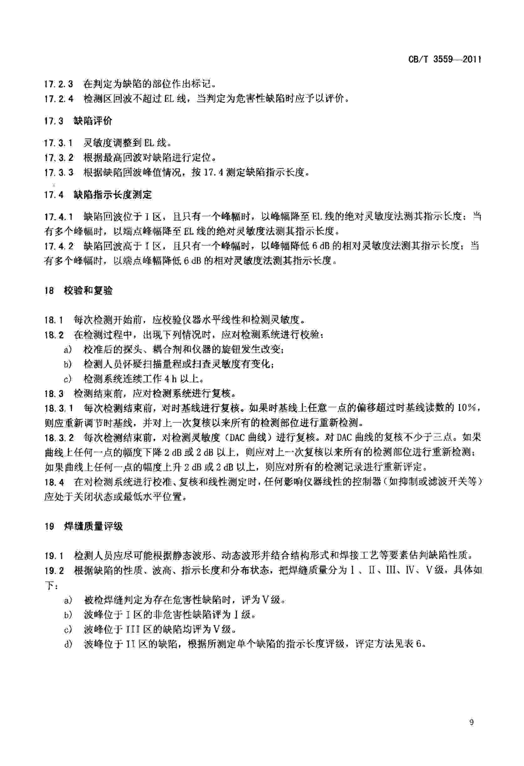 CBT3559-2011船舶鋼焊縫超聲波檢測(cè)工藝和質(zhì)量分級(jí)標(biāo)準(zhǔn)